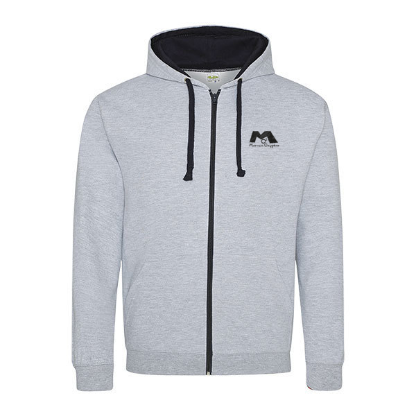 Sweat-shirt à capuche à zip intégral en plastique de couleur contrastée.